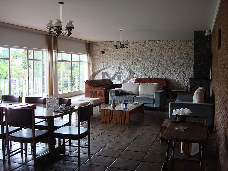 Ótima residência com excelente localização em bairro nobre de alto padrão, contendo 4 dormitórios, sendo 1 suíte, todos com armários embutidos, banheiro social com gabinete e box blindex, aquecimento central, escritório com armários, sala grande para 3 ambientes com lareira, amplo terraço com vista panorâmica, copa-cozinha planejada, despensa, área de serviço e lavanderia. Casa de caseiro em baixo com 1 dormitório, banheiro e cozinha. Pergolado, churrasqueira com bancada, salão de festas com bar, jardins, lavabo externo, ducha, piscina de alvenaria sem filtro, campo de futebol, vagas cobertas para 2 autos e descoberta para mais 2.